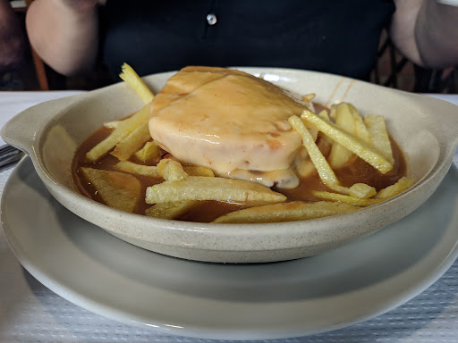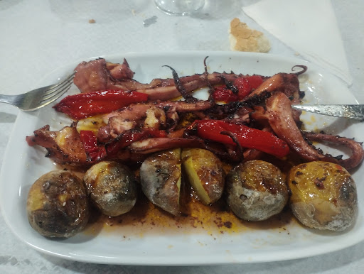 I had lunch alongside about 20 local workers: Faneca with rice and beans and bread. Half litre of white wine. Small bottle of water. Piece of bolo for dessert. €6. There was a meat option, I think some sort of sausage. If you come in the evening, it's more of a social club with 4 pool tables and a bar as well as food. Unbeatable...
