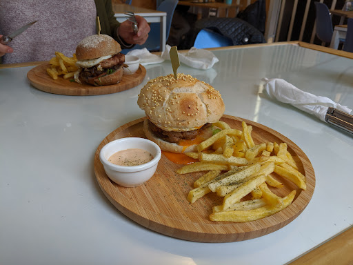 Read moreGreat variety of hamburgers (fish, pork, chicken, beef, vegetarian) and dips for the fries. Beautifully decorated and cozy interior. Nice staff. There is a weekly recommended burger (probably only at lunch time). Average prices for the menu (from 6 to 8 eur, that includes the dip and the fries, but not the drink). I hope to go back someday. I completely...
