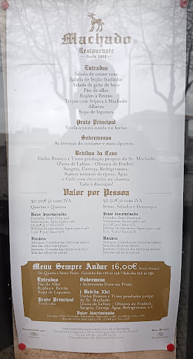 Read moreLovely food, great service. Cheeky owner is sure to entertain you throughout the meal (which takes at least 2 hours). Staff is very proud of their sustainable food. Flat 24€ rate p/pax entitles you to all you can eat delicacies, from numerous starters, exquisite soup and the trademark veal that is cut from the pan with spoons (it is that soft). Top that with 12 traditional deserts, and bottomless sangria, wine and lemonade, and you have an American sized food challenge, but with delicious traditional Portuguese food. Not a touristy place. I don't think you'll be disappointed, but don't expect a gourmet experience - expect a real...