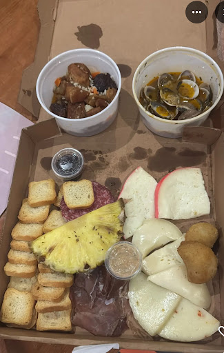 Só não damos zero estrelas porque o Google não deixa porque aqui neste estabelecimento estão simplesmente se lixando para o bom serviço ou para a volta dos clientes, o único interesse deles é 💶💶💶💶 Fiz um pedido hoje mesmo pela uber Eats ,onde paguei 51€ por uma tábua grande, segundo eles, é um picadinho. O extra desta conversa é que o picadinho que paguei á parte nunca veio sequer, as amêijoas vinham 11 , a tábua neste aspecto seco e horrível que podem ver nas imagens. Conclusão: metade do pedido não veio , imediatamente contactamos o estabelecimento para perceber o que tinha ocorrido, o senhor que atendeu simplesmente tentou se esquivar da grave falha deles tentando colocar a culpa no pobre do estafeta que está simplesmente a trabalhar e a ganhar o dinheiro honesto dele, ao contrário deste estabelecimento!!! Afirmaram que devolviam o valor caso retirasse a queixa na uber, coisa que não fiz porque a uber tem que ter conhecimento das atitudes vergonhosas dos seus colaboradores e ainda mais de tentarem incriminar o estafeta para se safarem! Obviamente o restaurante e a triste da responsável nao quis em momento nenhum devolver o dinheiro senão ja o teria feito de livre e espontânea vontade, estando sempre “dependente” da resposta da uber. A comida deles é mediana , embora eles pensem que seja maravilhosa, tanto no local como na uber, mas na uber então é de bradar aos céus. Precisam de aprender mais com verdadeiros restaurantes de tapas. Não só na confecção da comida mas principalmente no atendimento ao público. Porque o dinheiro não é tudo na vida; como a responsável demonstrou nesta situação. Não lhes importou perder clientes, ficarem com uma má imagem , uma nota negativa na uber nem de serem expostos no Google. Apenas lhes importa encher os bolsos, mesmo que para isso prestem um mau serviço e sejam só e apenas soberbos. Não aconselho ninguém a fazer pedidos pela uber e deixarei isso sempre claro, porque quando tiverem um erro deles, não contem com esta gente para resolver. Apenas com a uber. A uber devolveu-me metade do valor, a “senhora” responsável foi informada e teve uma triste atitude de ainda achar que deveria ficar com os 25€ que pagamos por aquela comida péssima que foi toda para o lixo . As fotos deixo aqui para que vocês tirem as vossas próprias ilações. Mesmo que o estabelecimento queira rebater,temos as imagens, a conversa com eles gravada , a conversa com a uber e todas as imagens que comprovam o péssimo e vergonhoso serviço deste...