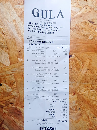 A small nice restaurant in Marinha Grande. Very cozy, nice people, good service at the restaurant and also for delivery. The pizza is very good and always fresh. The burgers are good, generous menu/portion. We have been at the restaurant and we also ordered with delivery. They also have an offer for deliveries. They will give you a stamp each time you order with delivery and you'll get an offer when the conditions are met. You need to ask them for the paper where you collect the stamps as the delivery people and the ones at the restaurant they're not really saying anything about this offer. We didn't know but the last time, a very nice delivery gentleman offered us the stamp and told us that we can benefit...