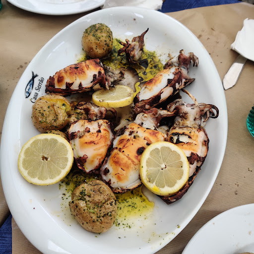 Read moreThis restaurant is located at the beginning of the street Heróis de França which is the street of matosinhos where you can find tenth of restaurant specialized in fresh fish. The speciality on this street is grilled fish and this restaurant is not an exception. We ordered petingas (small sardines) for starter and chocos na brasa (Grilled squid). They proposed the squid with ink, which is not very common and we like it, so we ordered it. The reason why this is not common is that it's difficult to clean the squid with breaking the pocket of ink. They solved this problem by not cleaning the squid ! No need to say that we were not expecting this and that this doesn't improve the taste of the dish. I understand that we asked for the ink, but we surely didn't ask for the rest of the entrails. At least a warning would have been appreciated. The squid was otherwise we'll cooked. The service was good, not too long and friendly. The price was reasonable. Maybe another main dish would have given a much better impression and it was just an...