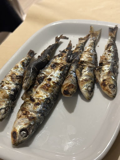 Read moreThis restaurant is located at the beginning of the street Heróis de França which is the street of matosinhos where you can find tenth of restaurant specialized in fresh fish. The speciality on this street is grilled fish and this restaurant is not an exception. We ordered petingas (small sardines) for starter and chocos na brasa (Grilled squid). They proposed the squid with ink, which is not very common and we like it, so we ordered it. The reason why this is not common is that it's difficult to clean the squid with breaking the pocket of ink. They solved this problem by not cleaning the squid ! No need to say that we were not expecting this and that this doesn't improve the taste of the dish. I understand that we asked for the ink, but we surely didn't ask for the rest of the entrails. At least a warning would have been appreciated. The squid was otherwise we'll cooked. The service was good, not too long and friendly. The price was reasonable. Maybe another main dish would have given a much better impression and it was just an...