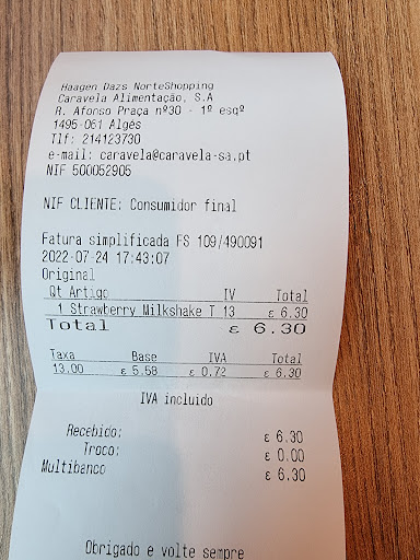 Read moreUma loja que não segue o padrão da marca. Cobram 4,10 € por uma bola de gude. Não preenche nem o copinho. Um absurdo! Não sei se isto é uma orientação dos donos para poupar sorvete ou se é o funcionário que não foi treinado para servir. Vergonha! 4,10€ para o padrão português é muito caro pelo que se recebe em troca. Melhor ir a qualquer outra marca. A impressão que tive era que estava comendo em casa, servido por uma pessoa qualquer. Por 9 euros posso comprar um pote inteiro! 1 micro bola por 4,10€ NÃO!...