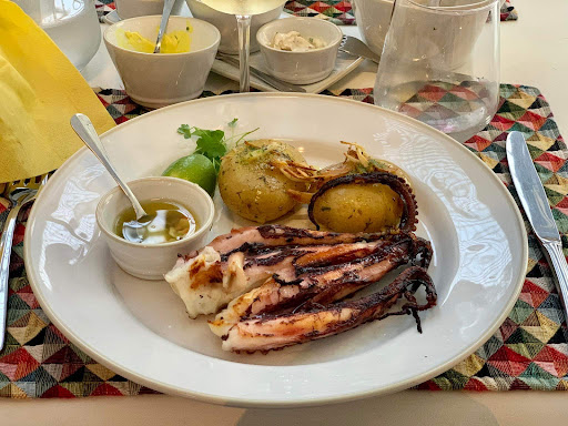 Read moreThere are a lot of different restaurants around the market that can cook the fish for you, but I highly recommend this one. They are very upfront about their pricing. It is 7€ per person to cook any fish you get from the market. The market personnel will clean it for you and bring it to the restaurant. Note that the market is open in the morning but closes at 1:00pm for an afternoon break. So go before that to get the fresh seafood. The restaurant has very reasonably priced sides that you just pay for normally. The service was excellent and the waiters spoke excellent English. The fish was cooked simply and perfectly. They also have outdoor tables if the weather is nice. I highly...