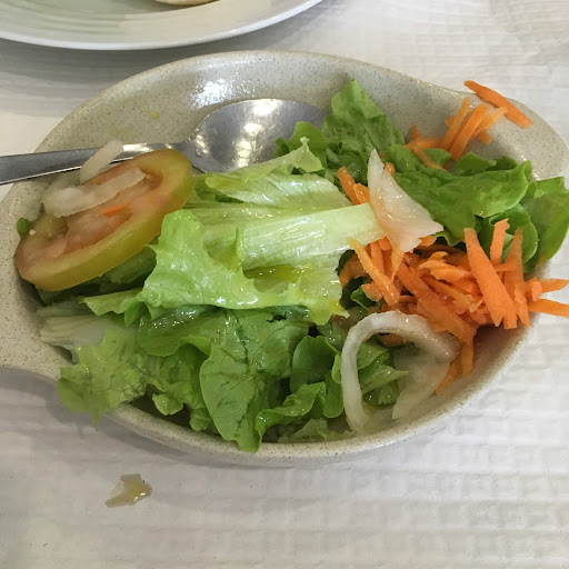 Read moreO lugar é pequeno, mas bem decorado e claro. É preciso chegar antes das 13:00 para evitar filas. As meia-porções são muito bem servidas e custam entre 4 e 6 euros. Há cerca de 20 opções de pratos a cada dia. Comi um spaghetti à bolonhesa (4 euros) e minha mulher uma pescada com arroz e salada (5 euros) e ambos estavam ótimos. O que mais apreciei foi que nada estava carregado de óleo ou azeite, como é comum por aqui. O arroz, por exemplo, estava branquíssimo. O café era saboroso e bem quente, como deve ser. O atendimento foi muito bom. É servida uma pequena cesta de pães como cortesia. Como único ponto negativo só o fato de trazerem uma porção de pataniscas de entrada que não foi solicitada e de cobrarem 1,50 euro por ela. O valor não é alto, mas foi incorreto servir e cobrar por...