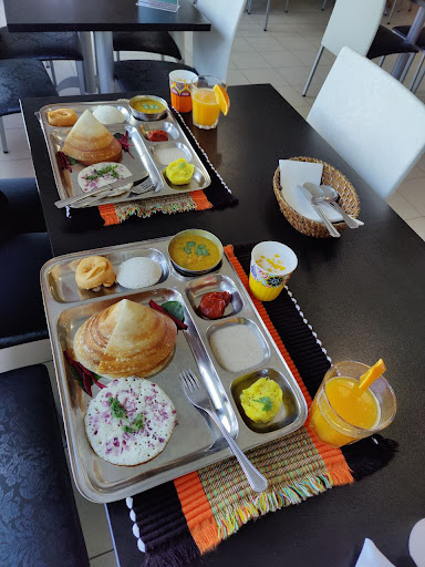 Delicious vegan south Indian food! I was there with my wife before our flight out of OPO airport. We had the thali and masala dosa plates. Masala dosa came with coconut chutney and sambar. The style was a bit different than I am used to with 2 smaller dosa, a bit thicker than I am used to, but crispy. Also the aloo "masala" was in a cup, but was amazing!