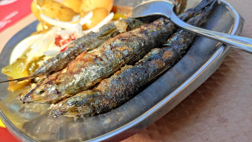 It might seem as a local restaurant that stems away from the touristic stereotype. And it definitely does... if you like greasy salt and pepper holders, ignorant waiter and.... wait for it... seriously overpriced food and wine. Don’t get me wrong, the value for money compared to Europe mainland is excellent, but so is any other restaurant in Portugal. This one however charges you for bread, olives and a salad (consisting of half tomato and few slices of onion over a lettuce leaf) that you didn’t even order. It’s given. And it’s a freaking €5 alone!!!! The waiter forgetting your drinks almost until the end of your meal and smoking a cigarette two meters away from your table. Fish soup is a potato pure with few empty mussels inside. Bland. Closest thing that comes to mind is a baby food/puke. The only thing that saves this experience is freshness of the sardines. However, there are two restaurants right next door, who’s plates did look waaaaay better than this one. Do...