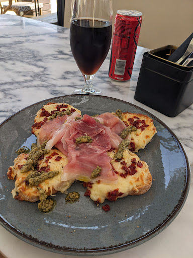 I'm coming back soon for more and you should too! I will start by saying that Wilson is perfectly located, 2 minutes walking from the beach and with its windows is silent enough to enjoy a good moment. About the food I had the tomato toast with presunto and cheese. De-li-cious. I was pleasantly surprised about it since the presentation was not that appalling. The pesto tastes magnificent and the cheese is greasy, an unusual and pleasant surprise. I think at least with this dish they need to improve the presentation to make it a 10/10 I will come back because I focus more on flavours than visuals so for me I'll get more things from the menu! Considering other options around Wilson just became my favourite in the area. PS: your dog is only allowed in the outdoor area,...