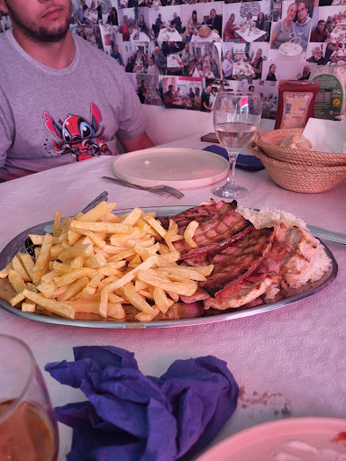 Read moreNous sommes arrêté dans ce petit restaurant , 4 adultes et 2 enfants , nous avons commandé un menu enfants à 8 euros frites riz et 2 petites Escalopes grillé , pour nous sardines grillé avec poivrons et pdt , et 3 plats de plusieurs viandes grillé avec frites et riz . Ont est arrivé à 12h , on a commandé un pichet de blanc et des sumol , ont nous a mis des olives , petits pâtés de sardines de thon . 13h15 toujours pas servi , mon mari demande au moins pour les enfants , ont lui répondu encore 2 minutes pour 2 Escalopes grillé . 13h20 enfin les repas arrivent . C est inadmissible d attendre 1h20 pour des trucs grillé , ils nous ont même pas offert le café pour s excuser de l attente . Sinon c était très bon . Attention les entrée...