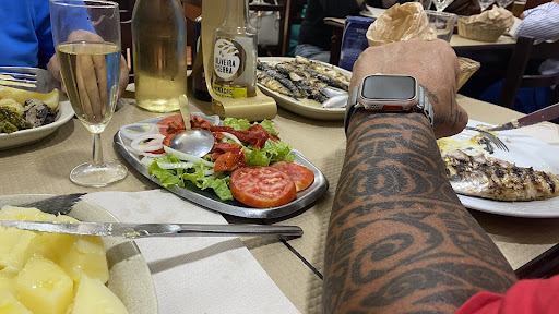 Fomos almoçar na altura do ano novo, 4 pessoas e fomos sentados na parte de trás do restaurante. A comida é razoável, não é nada memorável mas também não é má. Comemos meia dose de febras, as febras estavam boas, as batatas eram caseiras, o arroz vinha muito mal servido (duas cápsulas de café empilhadas, para referência). Bacalhau grelhado, um pouco salgado mas estava bom. Um bitoque, veio bem passado, como foi solicitado neste prato o arroz era mais abundante. As sobremesas estavam todas boas e aparentavam ser caseiras. O serviço foi dos piores e menos profissionais a que já estive exposto, fomos sentados e ficamos cerca de 20 minutos à espera que um empregado nos viesse trazer o menu e a carta das bebidas, quando nos fartamos de esperar levantei-me e chamei um empregado, após pedirmos a comida, chegou á mesa uma tigela com azeitonas, apos mais 15 minutos á espera levantei-me novamente para pedir ao empregado que nos servisse pão e o resto das entradas normais, chegaram logo de seguida. a comida demorou mais ou menos 50 minutos a chegar (fomos avisados que este ia ser o caso dado que uma das pessoas pediu espetada de lulas e este prato demora mais). Quando acabamos o prato principal ficamos mais cerca de 20 minutos à espera até conseguirmos fazer sinal ao empregado para pedirmos sobremesas. O ambiente do restaurante é okay, é um estabelecimento relativamente pequeno e acolhedor, no entanto está dividido em três salas, o que reduz significativamente o barulho. A relação qualidade preço não é forte, saiu a cerca de 21€ por pessoa para uma refeição onde 1h15m foram passados à espera e a comida não era espetacular. Resumindo e concluindo, a comida é okay, o serviço é atroz e o ambiente é...