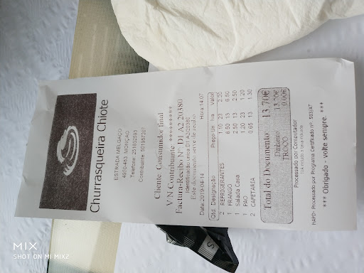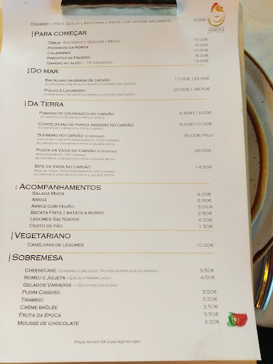Read moreLlegas te tienen un rato esperando, cuando eran 5 en barra,van como pollo sin cabeza, después tienen el pollo y la tira de churrasco echa en la barra,al aire libre ,la cortan ahí delante de todos,sin higiene,lo q le cae en la barra al la bandeja,no ponen guantes,el cocinero entra y sale de la parrilla con los guantes puestos y se pone a limpiar o recoger loza,la comida recalentada,luego te ponen ensalada,sin prácticamente aceite y vinagre,le pides patas fritas y te ponen bolsa de patatas chips,y te la cobran a 3'50e ,sin guarnición no tienen ,ni arroz ,ni verduras ni patatas ,joder q es Portugal q se come bien en todos los sitios menos ahí...el pan congelado se rompe todo.un asco de sitio.lo mejor la Coca_cola y el café,no tienen lista de precios.NO LO Recomiendo..No hay Pescado ni nado...