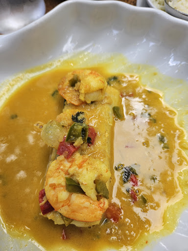 There was a small choice for my vegetarian travel companion so she ordered a starter salad and the main course to be served together. She wasn't informed that her main was freshly cooked and would take quite some time. Her salad was actually served when my main course arrived, and her main course didn't arrive for another 30 minutes after I'dfinished eating, so the whole meal was a bit disjointed. I ordered the pork cheeks which were delicious. Sadly, as is often the case with Portuguese restaurants, there were no fresh vegetables either included with the main course or that could be ordered separately. The accompanying mashed potato wasn't great but at least it wasn't from a packet. All in all, the food was pretty tasty but we were there for quite a long time waiting for...