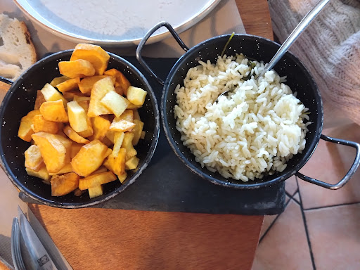 Read moreA super restaurant known for its meat grills which you can inspect in a big fridge as you enter passing the grill chefs. However the local stews are the best around. We started with black pig ham and local tangy cheese with bread which we devoured like wolves. This was followed by octopus stew with oranges and lemons, a pairing I’ve not had before but will again! and wild boar with chestnuts, again a superb unctuous stew with the tenderest meat that melted in the mouth. We had two bottles of fabulous red wine (see pic) and stayed for three hours. The waiters really enjoy the theatre of it all as people around us enjoyed huge kebab skewers served at your table and de-spiked with a flourish. Reader, we went back the next day for those kebabs. My partner had chicken and I plumped for tuna and that tuna was indeed plump, big chunks of meaty chargrilled fish so tender it must have been caught that morning. The portions are epic so we rolled out of there but not before finishing a really good bottle of white wine (see picture) that would challenge a great chateaux. The atmosphere is also relaxed and fun as the staff clearly enjoy sharing their cuisine with the guests. Book ahead to get a table outside with fabulous views but tables inside give you a bit of theatre so no worries if you can’t get one. The razor clams in season...