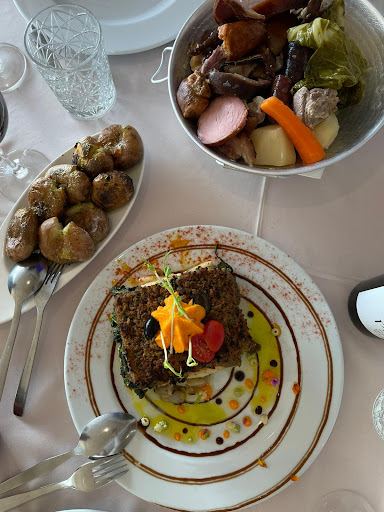 We arrived today at a late hour (around 13:50) hoping for a good meal since the place is well reviewed. A couple with a baby entered at the same time. There where several empty tables but the restaurant was about half filled. We asked someone at the entrance for a table for 2 and quite brashly got a simple "no, the head waiter says no". No explanation, no we are sorry but the kitchen is closing, nothing. Hence no review of the food was given. But as one can imagine, the service review was already tarnished at that point. To our surprise, the couple with a baby which already sat (without asking I imagine) was turned away as well... Well that's not a great atmosphere neither...