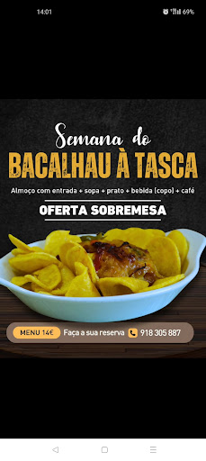 Fui almoçar com meus pais, esposo e filha pequena. Pedimos 3 menus do dia (entrada, sopa, bebida, prato e café) e um prato especial da semana, bacalhau à tasca (14€), que também incluía entrada, sopa, bebida, prato, café e sobremesa de oferta (conforme publicação do Facebook). Trouxeram-nos apenas uma entrada (pão e azeitonas), no entanto observei que o mesmo tanto é servido para mesas com apenas 2 pessoas. Pedimos 3 vinhos brancos e uma água com gás e trouxeram-nos uma garrafa de água e somente uma jarra pequena de vinho (250ml). Das outras vezes em que lá almoçamos, trouxeram uma jarra daquelas por pessoa. Não reclamamos nem da entrada nem das bebidas, mas achamos injusto. Perguntamos se os filetes de pescada (10€) eram frescos e nos foi dito que eram, porém acredito que eram congelados, estavam um bocado secos e não tinham sabor a peixe fresco. A picanha (14€), que já havia sido pedida anteriormente, estava boa, e o bacalhau também estava bom (porém com muitas espinhas). Havia um quadro com as sobremesas do dia (sem os devidos preços), escolhemos uma mousse de chocolate e pedimos à empregada de mesa, juntamente com 2 cafés. Enquanto minha filha terminava de comer a mousse, meu pai foi pagar a conta. Quando ele retornou com o comprovante de transação do cartão de crédito (não foi dado o talão com os valores de cada prato), achei o valor muito alto (52€) e resolvi perguntar para um funcionário qual era o valor do menu com picanha. Ele disse-me que era 14€, o que daria 48€ no total. Ele, então, imprimiu o talão e disse que havia sido cobrada a sobremesa e que somente o doce da casa era contemplado na promoção do prato especial da semana. Isso não estava escrito na publicação do Facebook nem em sítio nenhum do restaurante (dizia apenas oferta sobremesa). Ele disse que a atendente tentou explicar para nós as regras, mas não conseguiu, pois fizemos o pedido e não a deixamos falar (ela não tentou falar absolutamente nada). Deveriam mudar o que está escrito para "oferta doce da casa", aí sim as pessoas entenderiam. Também disse que a água com gás tinha um custo adicional de 0,50€, o que também não foi explicado nem estava escrito em sítio algum do restaurante. Enfim, foi bastante rude, então resolvi que não valia a pena brigar por 4€. Já havia almoçado lá outras 2 vezes, a comida estava boa, porém o serviço sempre foi...