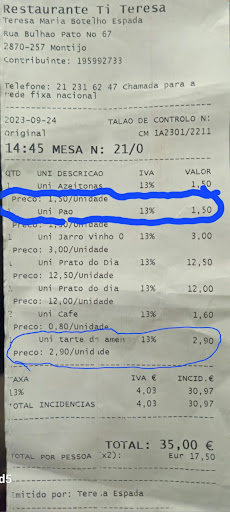 Parte 2. Realmente tinham uma crítica positiva deixada anteriormente (feita na primeira de 4 vezes que estivemos aí) antes deste acontecimento. A partir do momento em que a experiência se altera, deixa de fazer sentido manter a critica/classificação atribuída anteriormente. Quem nos atendeu, serviu a tarte, ouviu a nossa reclamação,fez a conta, entregou e não disse para conferir. (algo que habitualmente nós fazemos, mas infelizmente por ser Domingo e o serviço ser mais demorado, já estavamos atrasados para os nossos compromissos, simplesmente pagamos e saimos e só reparamos já fora do local). Quanto à tarte, falamos do que sentimos ao provar, não deveria ter sido servida naquele estado. Foi a nossa experiência, lamento que não sejam receptivos a críticas. Não é pelo valor monetário que se perdem clientes e sim pela falta de atitude perante este tipo de situações. A diferença no serviço atrai clientes a uma casa, a indiferença por sua vez, afasta. Foi essa indiferença que nos fez apagar a crítica anterior e...