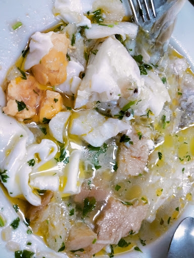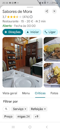 Read moreParagem ocasional. A entrada para o restaurante estava com muito movimento ao balcão, com o funcionário a indicar com um acenar de cabeça a direção para a sala. Atendimento na sala com duas mesas ocupadas, um pouco apresado como quem dizia "já te decídias, não" Pratos escolhidos: Costeleta de vitela, que derivado á espessura estava completamente crua. Pedimos para passar um pouco mais. Bacalhau á lagareiro com migas de coentros. Posta alta com a pele a dar indícios de ter passado na brasa, mas sem o sabor característico do bacalhau, que mais parecia que também teria passado pela frigideira. As migas, alentejanas, estavam ótimas. Valeu pela sobremesa, uma sericaia com a tradicional ameixa , estava muito muito boa. Aqui...