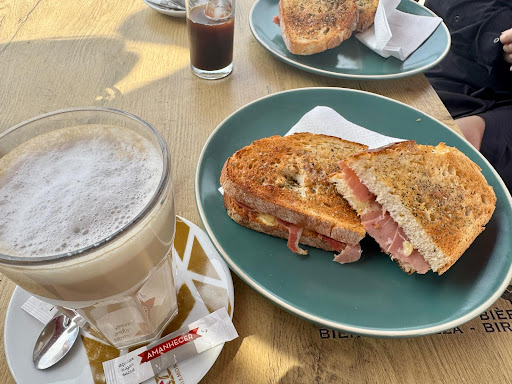 Read moreOver promise total. Antes de llegar habíamos cotilleado la carta y hemos pedido en consecuencia. Sin embargo, aunque la tosta de presunto jamón (el nombre portugués le va como anillo al dedo también en español, la calidad es bastante mediocre) con queso de la sierra hace dos meses costaba 6 euros, hoy le han dado la vuelta al número y nos han cobrado 9 (lo que en el refranero popular se llama "hacer el agosto"), un precio es totalmente desproporcionado respecto a la calidad del bocadillo y al garito en sí: estaba todo ultrasucio, especialmente los baños, donde se habían limitado a cambiar las bolsas de las papeleras y los dos WC no tenían pestillo. En fin, un lugar a evitar, por lo...