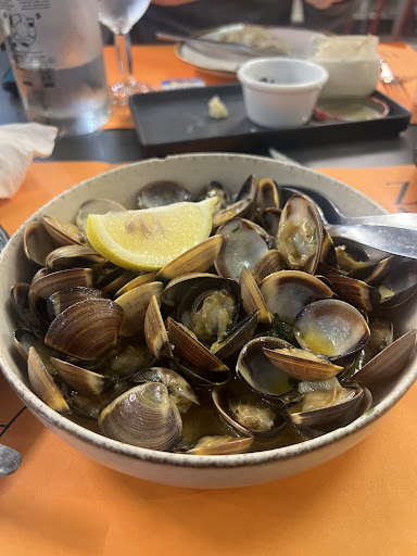 We had dinner here because it was the only place in town opened. We didn’t have any reception so we couldn’t see the reviews. I’m glad the night took us to this amazing place. Food was unbelievable good. Specially the clams #4 in the menu, buttery, super flavorful in a olive oil, beer, garlic and cilantro sauce. Do yourself a flavor and have it with a glass of the house verdhe wine. As you know in Portugal they serve “unordered” appetizers you have the right to return them or just keep them. We had an amazing semi-hard cow & goat cheese SO GOOD! Of course black olives and the house tuna pate with some...