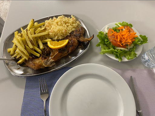 I would highly recommend this place. The food was good and priced fairly. We were there on a Friday night and noticed a majority of the customers were locals. When we entered we told the women at the counter we wanted to dine in. She directed us to a table. A waiter came and delivered bread and olives to the table these cost extra I assume you can turn them away if you don't want them. We ordered a half chicken and split it between the two of us since we were not needing a big meal. We ordered piri piri sauce but it didn't have any spice, maybe we need to ask for spicy piri piri. Everything was good. Every seat has a view of the kitchen where you can see the grill full of chicken's...