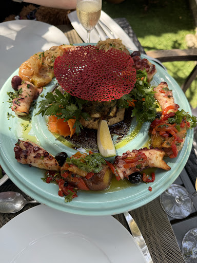 Our party had the grilled octopus, fish and seafood stew, sautéed prawns and the vegetable lasagna.