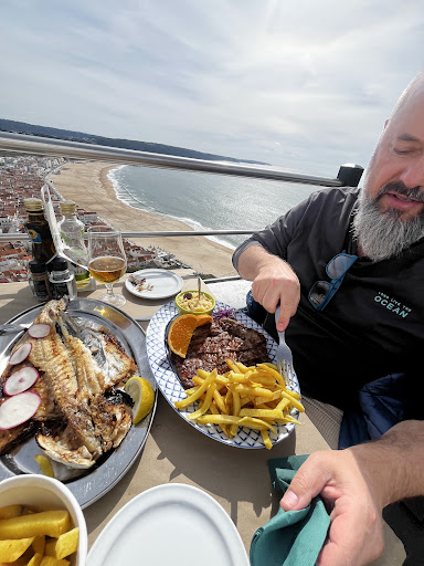 This small family run seafood restaurant is perched on a cliff overlooking the town of Nazare and it's inviting beach. The restaurant probably has seating for about 50 and even though it was well past lunch hour, it was completely full. The helpful proprietor suggested that we pick from the day's fresh catch and to return in 20 minutes when both the food and table would be ready.