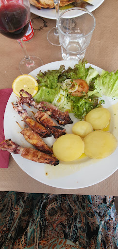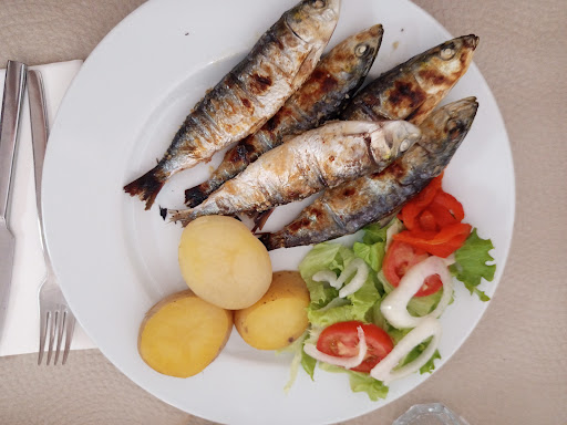 Fuimos a ver las vistas desde el mirador de la playa de Nazaré, se nos hizo algo tarde y buscamos algo para comer. Este restaurante se encuentra justo al lado de la plaza de toros. Tiene una carta reducida pero variada, pollo asado, sardinas, chuletas de ternera, pollo, chipirones.... Al llegar nos atiende Nelson, espigado, buena presencia y tras escucharte lo primero que te dice ,en broma, que no habla español (durante la comida nos dijo que hablaba 4 idiomas), nos dispuso una mesa en un momento. Decir que si llevas prisas mejor irte a una hamburguesería, porque son dos personas, otra mujer en la cocina. Restaurante sin muchas pretensiones, es como cuando vas a tu sitio favorito de menú de toda la vida. Nelson es todo nervio, no para de moverse, te pregunta si todo está bien, siempre con la coletilla que no habla español. Pedimos unas sardinas, chipirones, chuleta ternera y bitoque de pollo. Decir que tardó bastante en llegar los platos pero es como el que va a una corrala de teatro, Nelson es muy especial y te ríes con él. En general los platos abundantes y productos de calidad, pan, paté de sardinas, agua, aceitunas para amenizar la espera. Luego nos puso de postre flan y mouse de chocolate, a parte nos dejó una botella de licor de mora casera para que nos echáramos lo que quisiéramos. Un sitio de los que no quedan y con una atención y servicio atípico. Volvería sin duda a comer de...