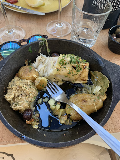 I will write this review in English so non Portuguese speaking can also read it. It makes me sad that I come to my own country on vacation and realise how much tourists, as myself, get robbed in food. To start they bring to the table starters that you never ask and the price for the really tiny portions it's just outrageous. We've paid as much for 3 tiny starters and bit of bread and butter as a main dish price. We paid 60€ for a dinner of 2 and we do not drink alcohol. For the mains we had octopus and codfish both " à Lagareiro" but there was nothing à lagareiro about it. The olive oil could have been just frying oil cause I couldn't taste olive oil at all and the chef must have run out of garlic cause there was none and not even the taste of it. The octupus looked only boiled in water and not finished from oven as it should from this recipe. Now I've seen in all in many restaurants but never was I served one (1) single leg of octopus as a main dish, this is just the top of top of robberies. The codfish as dry as the fish the ladies are drying in the sun, I could only eat the thicker part of it cause the thiner was just so dry not even the oil in the plate could save it. And all very bland without any taste. I was never so disappointed finishing a meal of food I love and was...