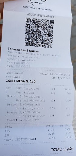 "Tasca" the Portuguese word for a cheap and traditional restaurant. "Taberna" is a wine oriented "Tasca". You usually came to this places not for the service or the fancy instalations but for nice food and company at a reasonable prices. Taberna das 5 Quinas is one of those places in Alentejo. 24 Euros for pork alguidar mix, eggs with farinheira, a jar of sangria and a delicious homebrewed desert for 2 persons. What more can i say? No photos because the food...