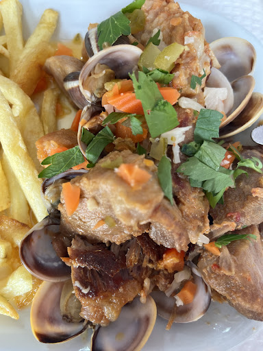 Nice, simple place, for the food they serve prices are good, I was dining during pre season so the town itself wasnt even busy, visibly less staff too, but we got great service, not expecting too much but everything went very well and our waiter was available and offered drinks when needed. We got some chips without any trickery of charging extra, it was a genuine sweet gesture from our waiter. Food quality was good and fresh, fish of the day selection really made me happy. Just one thing I noticed what to expect is it seems thay everywhere in Portugal they rarely debone the fish so be prepared for some work or pick something easy it seems very...