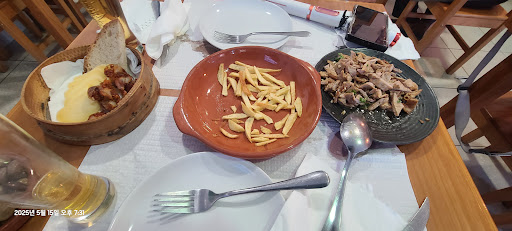 My friends and I walked in at around 15:30 struggling to find food in the quaint village of Santo Teotónio. With desperation on our faces and growling sounds coming from our stomachs, we asked the lady behind the counter if we could eat in her restaurant. The sweet angel replied: “nobody leaves this establishment without having eaten something. It doesn’t matter the time of day, a meal will be made for a hungry individual.” We rejoiced, our hearts being once again full of hope. As I took my seat, my eyes wandered to the wall where I noticed signs that said menu of the day. “We’ll take four of those, please” “Right away!” she said. As the plates came, our jaws dropped. Never had I seen plates of this stature in the great country of Portugal. On the plates laid what resembled a tricolor mountain range, taller and vaster than the Alps: hills of pork stew, rice, and french fries - enough food to feed 100 soldiers. You may say: quantity is one thing, but quality is another. One indicator - no words were uttered for the duration of the meal. Needless to say, we walked in four starving boys, and walked out four distinguished and satisfied gentlemen.