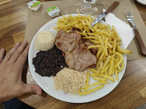 Já tínhamos ido algumas vezes. Num certo dia, partilhei um prato com uma amiga e foi avisado q bebidas e sobremesas seriam à parte. Ok. Hj, essa amiga partilhou um prato com o marido (pois ela fez cirurgia e não come quase nada). Éramos 6 pessoas e tínhamos direito a 4 bebidas e 4 sobremesas. Meu marido não quis a sobremesa e deu pro amigo q partilhou o prato com a esposa. Quando chegamos ao caixa para pagar, o senhor do caixa extremamente mal educado, e uma outra funcionária q tb não tem nem um pouco de educação, começou a gritar dizendo q toda vez q vamos lá, criamos confusão e q teríamos q pagar outra sobremesa, pq não podemos partilhar. Enfim, quem nunca foi, não vale a pena ir e quem já foi, espero q tenha tido melhor experiência. Não volto e...