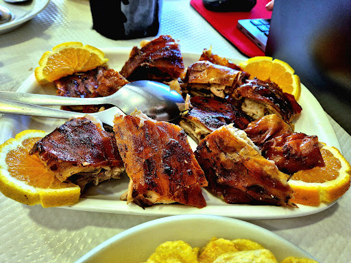 Genericamente tudo muito bom mas... estes pedaços pelo meio do leitão estaladiço e a quantidade servida não me permite dar as 5 estrelas.