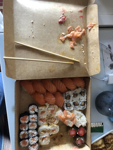 Este é o pior restaurante da cadeia Sushicome (frequento regularmente o de Oeiras e Linda-a-Velha QUE SÃO BONS) e onde, pessoalmente, comi o pior sushi até agora. Entrei por volta das 19h10 e durante 1 hora estive sozinho à espera de pedidos que chegavam a conta gotas. Entravam de vez em quando pessoas para levar take away, nada de mais, muita risada e conversa, ficavam a olhar como se a espera que me servisse sozinho. O pior foi mesmo a qualidade do sushi, os quentes até estavam aceitáveis mas os frios... Um dos primeiros pedidos era um combinado (C14) que tinha entre várias coisas uns "barcos de salmão". Quando meteram o combinado na mesa senti de imediato um cheiro a comida estragada, quando olhei para o prato lá estavam os barcos (cujas fotos coloquei e podem comprovar) com um aspecto terrível, nem sei se eram de salmão ou atum mas o que quer que fosse, era mau. Quando chamei a atenção da responsável disse-me que era assim mesmo, algo sobre ser salteado e ficar mais doce, provei para ver se era mesmo como dizia, não era. Pedi para levar os barcos de volta, não perguntou se queria outros, não tentou redimir o fiasco. O sashimi de atum foi também para esquecer, tal como a maior parte dos frios. Não consegui comer muita coisa, comecei a sentir-me enjoado com os cheiros e sabores. Paguei e fui para casa o mais rápido possível para lavar os dentes e as mãos. Pior experiência de sushi...