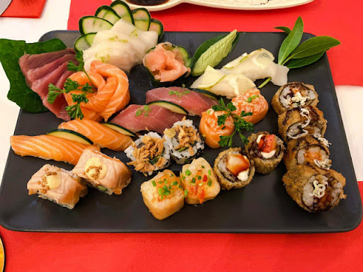 Apesar de uma primeira imagem pouco impressionante, não foi pelo espaço que viemos, mas sim pela comida! Ao contrário do que pensávamos - erro nosso por não conhecermos o conceito do espaço - não estávamos num restaurante típico de sushi ou de comida asiática. No menu temos uma verdadeira viagem gastronômica, desde Nachos, Prego, Polvo com Batata Assada, Hambúrguer... entre muitos outros até acabarmos com as opções de Sushi. Mais uma vez, os indicadores não eram os melhores, mas mantivemos a motivação e pedimos um MoMo de Frango e um Fusão Médio (com 32 peças) para dividir por duas pessoas. De longe, o melhor do Felicity Restaurant & Sushi Spot é a comida e, no fundo, é o que realmente importa! O MoMo de Frango estava bastante saboroso e o Fusão tinha uma oferta muito variada, ótimo para experimentar sabores diferentes com produtos que se notavam frescos. Os nossos favoritos foram os hot roll (já dissemos que não somos maiores fãs de sushi, não foi?). Apesar de serem combinações mais tradicionais e sem grande criatividade, o corte de todas as peças era cuidadoso e apresentação bem preparada.
