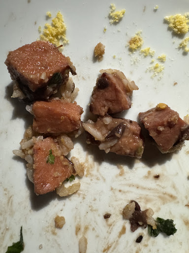Arroz: O arroz estava empapado, o que prejudicou a textura e a experiência geral da refeição. Um arroz mais solto seria ideal para complementar melhor o prato principal.