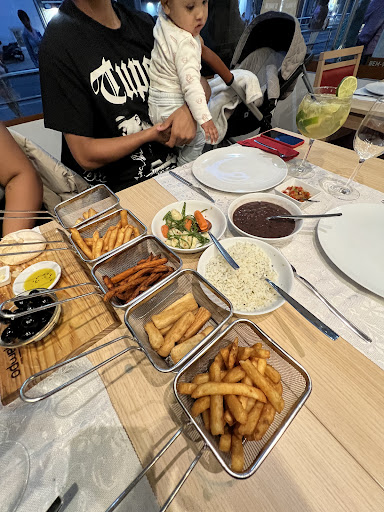 Read moreWe got there a little late 20 min past our booking so they gave our table away but they gave us another one after which we were very grateful for. The first lady that served me could not speak português or English which I found it very weird because we are in Portugal.. so communication wasn’t the best. Im not going to lie the service is not amazing (I do wanna thanks João because he was so helpful & explained the menu) but everyone else needs a little more training. The food is good, it’s worth the price if you eat a lot. If you don’t eat a little might be pointless. You get unlimited sides and meat. And the Caipiblack was sooo gooood. We were 4 plus a child (doesn’t eat yet) bill went to 116 We all choose the 20.99 rodízio plus 1 or 2 drinks. Overall it wasn’t the worse I was just a little disappointed because service could have definitely...