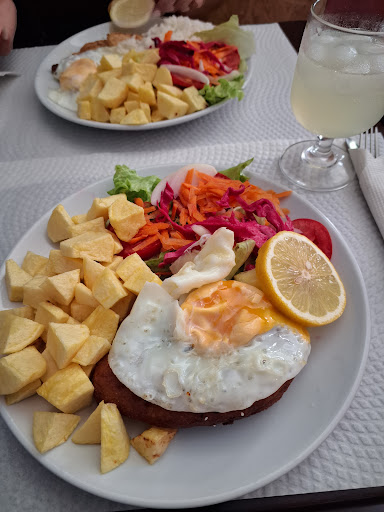 Top Comida é boa e simpáticos. No vinho devia ser um jarrinho por pessoas como é quase em todos lados. Preço do menu é só prato e copo de vinho e café penso eu.. digo isso pelo preço do menu. Única...