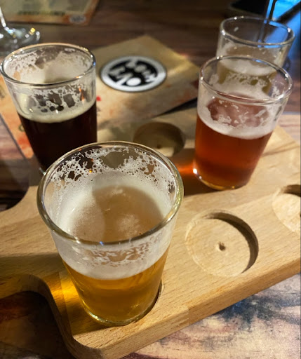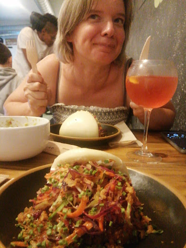 Read morerepaginaram o bao com sabores do mundo num pão fofíssimo e gostoso. fui de vegetariano com bbq e me decepcionei porque o molho sobressai muito e acaba tomando o sabor de tudo e deixando bem enjoativo mas provei o de carne da amiga e o molho tava MUITO BOM! o queijo até dá uma sobressaltada além mas não atrapalha em nada. entradas pra todos os gostos, com fritas laricudas e camarão sequinho com molho alhudo. tabuinha com prova das 4 cervejas da casa (todas ótimas) e vinho alentejano fresquíssimo e coringa. sobremesas laricudas! brownie macio e beeem doce (eu prefiro mais chocolatudo) e crumble de maçã com amendoim e sorvete que já é mais minha cara de sobremesa: fruta fresca, amendoim, crocante, texturas, sabores.