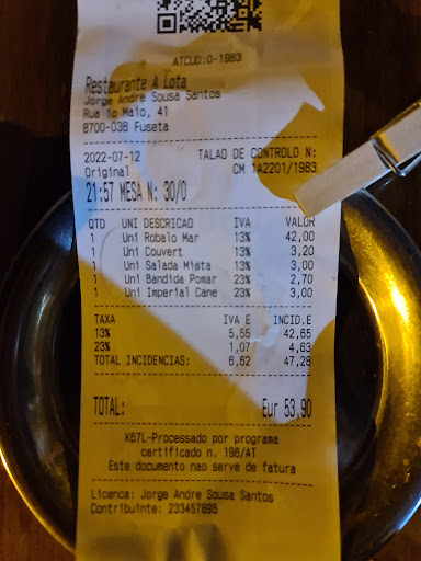 Read moreWe were spending the evening on Fuseta and had been recommended to try one of the three restaurants next to each other here. We went for A Lota as it was the only one open before 6:30. They advised that they couldn't take food orders until 6:30 but we could have a drink.