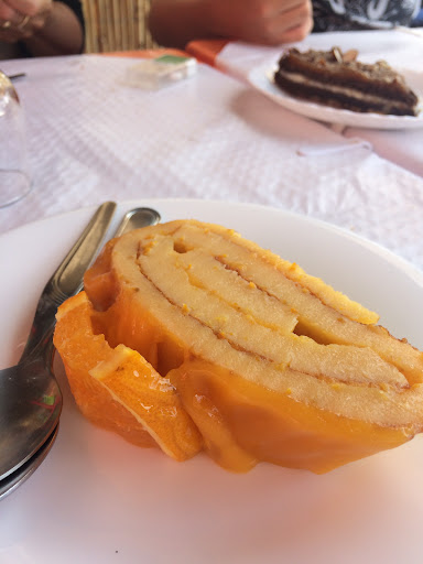 The joyful noise of people enjoying food and the heavenly smell of the bbq will attract you if your nearby during lunchtime. We had to subscribe to a list and were waiting 40 minutes to get a table at this crowded terrace and open-air grill. The place belongs to a small café, which is probably just a café in wintertime, but becames a crowded seafood grill during summer with the addition of this terrace. You really expect to find at least one place like that in a traditional fishing village. I am giving only 4 stars to the place instead of 5, not because the food, service or price for value, but because it is surrounded by a parking lot, that separates the place from the direct port and water view. Instead of seeing cute boats swaying on the water and smelling fresh ocean air while eating, cars are almost parking next to your table and you can smell their smog. On the other side of the terrace there is a road with running cars... Cars everywhere - that is true for the whole Algarve - please start lobbying to remove the parking lot from the small port and remove cars from historic downtowns! They jus kill the athmosphere of this place and the liveability of small city centres. (Pavements in the towns of Algarve are basiclly extensions of parking lots, useless if you are a simple pedestrian and you can completely f*ck yourself if you are with a baby in a pram or using a wheelchair, but that is a different story, let’s just go back to our lunch.) Grilled salmon: well grilled, perfect texture and great garlic-coriander-salt-lemon harmony. The fillet was quite big, so even with eating only the salad from the garnish and leaving the cooked new potatoes to my 15-month old baby, I was full. Grilled sardines: very well done, delicious salt-lemon taste harmony, however the head was not eatable. They also grill sausages, hamburgers and lamb. For dessert we tried the orange cake and the fig cake. I expected more from the fig cake, but it was not bad at all. The orange tart was really delicious, but too sweet for my taste. However, it made me curious to try more orange cakes while in Algarve. I think, I might have found my new favourite cake. The staff was kind, the service was quick spiced with a bit of chaos during peaktime (two waiters took our order and a third one also came to take it, but better three than none ;)). All in all, they seemed very professional even in the chaotic, crowded peaktime. Price for value: good. If you love simple and freshly prepared seafood or non-fancy, simple streetfood, this place is a must in the lovely fishing...