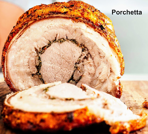 I decided to try the Porchetta (€7), a huge, tender pork loin rolled with herbs and spices, wrapped in the pork skin, and baked at low temperature for hours (see photo), but what arrived at the table was razor thin slices of fatty pork, again, probably from Pingo Doce.