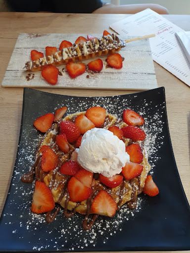 Read moreTrès bon, je recommande car c'est un délice mais en tout cas le patron a ce moment là, n'a pas bien organisé la chose. La terrasse pleine, une file d'attente également et seulement 3 personne pour servir les clients en sachant qu'une dame était en caisse, un monsieur faisait les crêpes pancakes, dessert quoi et l'autre venait servir en terrasse et nettoyer/ ramasser les assiettes des personnes qui avait fini de mangé donc c'était la course. Une pression. A ce rythme là, ils sont pas prêt pour l'été ça c'est certain. Faut embauché au moins pour la période estival. Mais les 3 personnes présente très agréable souriante, bon accueil, les dessert impeccable. Super bon. Vraiment une merveille. Mais attendre plus de 35min c'était long. J'espère que le patron embauchera car c'est énervant pour les clients et intenable à long terme pour les employés ça c'est sur et en plus de ça il perd de l'argent car les gens n'ont pas la patience d'attendre si longtemps... donc moins de clients à l'arrivée. Mais j'adore quand même cette endroit. Ah, et une chaleur la dedans, je sais pas si c'est les ampoules, ou la climatisation que j'ai pas cherché si y en avait une ou pas mais trop chaud, même le mur était chaud... courage au employés et client en fil d'attente, car...