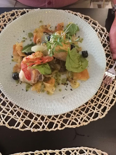 Read moreTouristenfalle!!! Das ganze Restaurant war anscheinend ausgebucht, doch es befanden sich nur 4 Leute im Restaurant und auf der Terrasse. Uns wurde jedoch ein Tisch auf die Strasse gestellt dieser war jedoch so wakelig das wir zwei Schweizer 5er Münzen zum stabilisieren benötigten. Wir waren sechs Personen und hatten fast keinen Platz. Das Essen war immerhin gut und wir tranken ordentlich Wein. Da wir uns am Abend verköstigten wurde es schnell dunkel und wir hatten kein Licht auf der Strasse, also musste mein Freund alle 5min aufstehen um den Sensor der Strassenlampe zu aktivieren. Immerhin kam ab und an ein Auto welches uns Licht brachte, das Problem war nur das wir zweimal fast überfahren wurden, da wir ja wie bekannt auf der Strasse im Dunkeln sassen. Ein Auto rasste an mir vorbei und streifte meinen Freund an der Haarspitze so knapp, dass dieser fast mitsamt Stuhl mitgerissen wurde. Die Gefahr stösste am ganzen Tisch soviel Adrenalin aus, dass sogar die Garnele meines Freundes wieder in Bewegung kam und versuchte die Flucht zu ergreifen. Als wir Dessert bestellen wollten wurde uns die Karte gebracht aber 30 Minuten keine Bestellung abgenommen. Da entschieden wir uns die Rechnung anzufordern. Sie wollten uns jedoch abzocken und verrechneten die Vorspeisen doppelt, für ein Mini Tortilla ca. 12,5g und Warenwert von 80 Rappen/Cent wollten man uns 12 Euro abverlangen. Als wir auf die Abzocke hinwiesen wurde die Rechnung angepasst und folglich stieg der Warenwert des Weines.