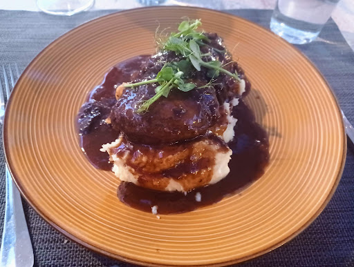 For my main, I had the stewed pork cheeks (€16) in a plum sauce sitting tastefully atop a good portion of mashed potatoes and garnished with fresh herbs. The pork was tender, the sauce delicious and not overly sweet, and the potatoes firm, yet creamy. The portion was quite substantial and I left pleasantly satiated, but not stuffed.