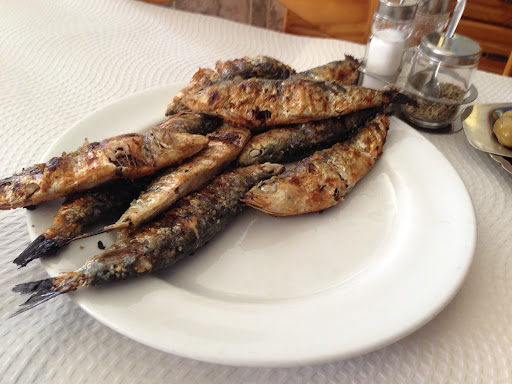 Venimos de vacaciones a Olhão dos parejas de amigos, sinceramente llegamos a este bar restaurante/venta por recomendación de otro, porque si no hubiese sido así habríamos pasado de largo,porque no da una buena sensación ya que es un establecimiento algo dejado y hay mesas y más mesas llena de personas comiendo unos al lado del otro sin conocer en alguna ocasión al de al lado. Sin dejarme llevar por la primera impresión decidimos entrar y apuntarnos en una pizarra que hay en la puerta donde apuntas el nombre y el número comensales. Después de esperar un poco sin saber muy bien la organización que llevaban y hambrientos, hablamos con uno d los camareros que enseguida metió el turbo y solucionó todo el atasco de clientes que había. Nos sentamos en la mesa nos toman nota de la bebida, ponen los cubiertos y platos limpios por persona y seguidamente se acercaron con un plato de migas q lo ponen por cortesía de la casa y ofrecen aceitunas, ensalada, patatas asadas y ensalada ( que yo os recomiendo que le digáis q no las dejen, xq os lo cobran aparte no es nada del otro mundo y la meten doblada en eso) después empezaron a pasar los camareros que traían pescado hecho a la brasa, que para mi sorpresa estaba estupendo ; lubina, sardinas, chipiron, merluza, dorada, caballa, ..... puedes comer hasta reventar por solo 10€ por persona y aparte la bebida claro...