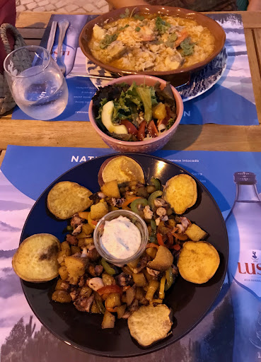 Read moreIn short: NOT recommended despite some delicious (main) dishes --- We visited ‘Tasca O Galo‘ twice during our stay in Olhão, which indicates that it can‘t be such a horrible place... the restaurant is located behind the bustling main ‘avenue‘ & the market halls and could be considered as a hidden gem at first sight. We enjoyed the Cataplana w/ black rice very much - that’s why (and the only reason) we came a second time. Another seefood rish dish with monk fish was tasty as well. In contrast, the octopus dish looked better than it tasted, most starters were nothing to write home about, and finally half of the desserts on the menu were not available. There were some reasonably priced wines on the list, just a pity that the waiter did not really have a clue what she is recommending. The service is very slow at times and almost rude if the slightest thing goes wrong... once you are there you will immediately understand many of the negative comments about Tasca O Galo. The main waiter acts really bossy and is not up to the task - we have hardly ever seen such an arrogant person in Portugal :-( So despite the peaceful setting this is certainly NOT a place to spend a relaxed & enjoyable evening - better choose one of the plenty other...