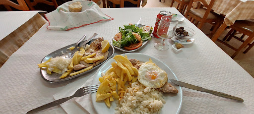 ci siamo fermati per pranzo. abbiamo scelto il menù del giorno perché le pietanze del ristorante tra cui il mitico bacalau non era disponibile. solo il menù del giorno. il locale è vecchiotto e la pulizia del pavimento è nel media dei locali non turistici dell'entroterra, piuttosto bassa. ma abbiamo mangiato bene, le stoviglie erano pulite e abbiamo digerito tutto. porzione molto abbondante di carne con patate e riso, con vassoio di insalata. la proprietaria è stata gentilissima ed abbiamo pagato 11 euro in 2 con...