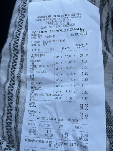 Due anni fa ero passato casualmente da queste parti. Avevo visto il cartello invitante sulla statale e mi era piaciuta l’idea di una piccola deviazione. C’eravamo trovati benissimo; il leitao, maialino da latte, era ben cotto, croccante e servito con due contorni. Il prezzo era stato irrisorio; ero stato così soddisfatto che avevo fatto aggiungere il locale su trip-advisors. Oggi, ripassando da quelle parti, ci sono ritornato Il locale ora è affollatissimo; il maialino da latte è sempre croccante e servito con due contorni, ma nonostante fossimo arrivati presto ci hanno assegnato un tavolino vicino all’ingresso e giusto sotto il condizionatore, non proprio pulito. I prezzi sono cambiati e ora la trattoria ha prezzi da ristorante. Un po’ di delusione ci...